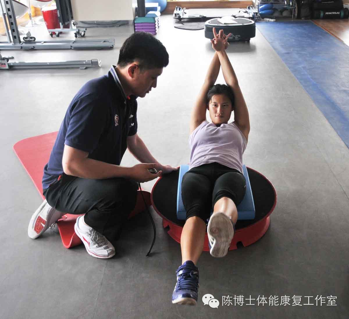 After I took over Lu Ying, the first thing I did was conducting a comprehensive function test on her. From a conventional functional and clinical examination point of view, this was typical “swimmer’s shoulder.” But somehow I was questioning myself: why did Lu Ying suffer from this problem in the first place? So, I asked coach Cui for Lu Ying’s recent technique training videos, and watched every one of her moves in the water over and over. After further observation and analysis, I discovered that Lu Ying’s hand and leg movements were disjointed, and that she was driven forward mostly by her thighs rather than her waist, therefore, the strength could not be transferred to her upper body. As a result, her body’s movement relied more on her upper limbs. Over time, her upper limbs carried too much of the load, and a shoulder injury was inevitable. After the problem was identified, the solution gradually formed in my mind. I discussed this with coach Cui: to resolve the comprehensive problems of Lu Ying’s shoulders in such a short time was naturally impossible. However, correcting her technical movements and strengthening the coordination of her hands and legs were feasible in the short term.