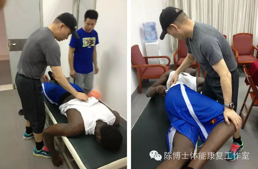赛前再见到他时,我好生奇怪,他一身便装,像个看客。问他又怎么啦,他无奈地说:“腰胯还是痛,今天不能打比赛了!”在休息室我为他作了详细检查,最终确定,他的痛感并非来自深层关节内,而是肌肉挫伤和复位以后韧带的酸痛,软组织损伤一般要3-5天恢复,但我们已进行了及时处理和炎症控制,对其运动应无大碍。于是,我让人去酒店取来他的球衣。