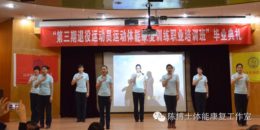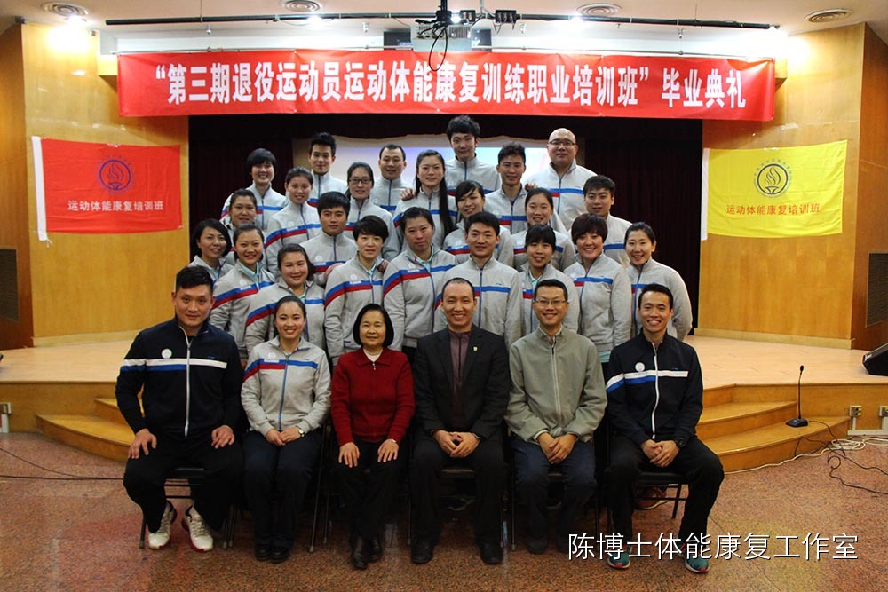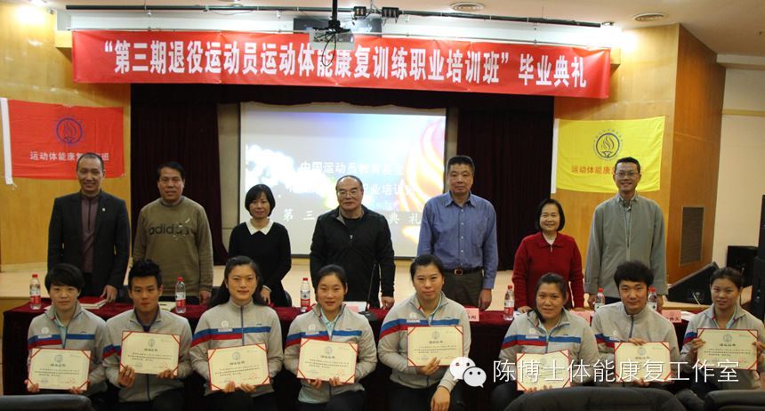 At 10:00 am on December 8, 2014, the sound of cheerful music came from the Multi-purpose Hall of the State Sports General Administration. It was the graduation ceremony of the “Third Term of the Retired Athletes Physical Rehabilitation Professional Training Class.” People who attended the ceremony included the deputy director of the Science and Education Division Li Weibo, deputy director of the Human Resource Development Center of the State Sports General Administration Kuang Yuehua, the teacher representative of the training class Ding Xueqin, internship representative from Xiannongtan Sports Technology School Li Binglong, secretary general of the Chinese Athletes Educational Foundation Zhao Weiwen, director of the Physical Rehabilitation Project Dr. Bob Chen, and all the graduates of the Whampoa third term class.