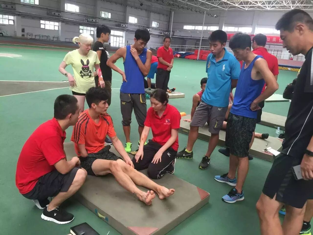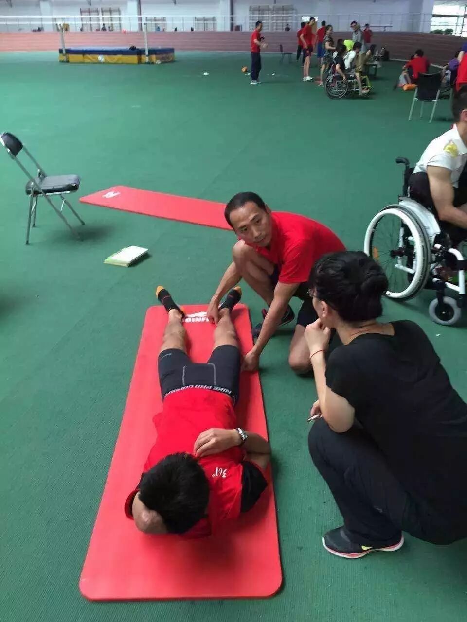 7.23 日有幸能够来到残奥会运动员训练的场地,在陈博士和学长们的带领下可以和这些顶尖级的运动员能亲密的探讨体能康复的学习。