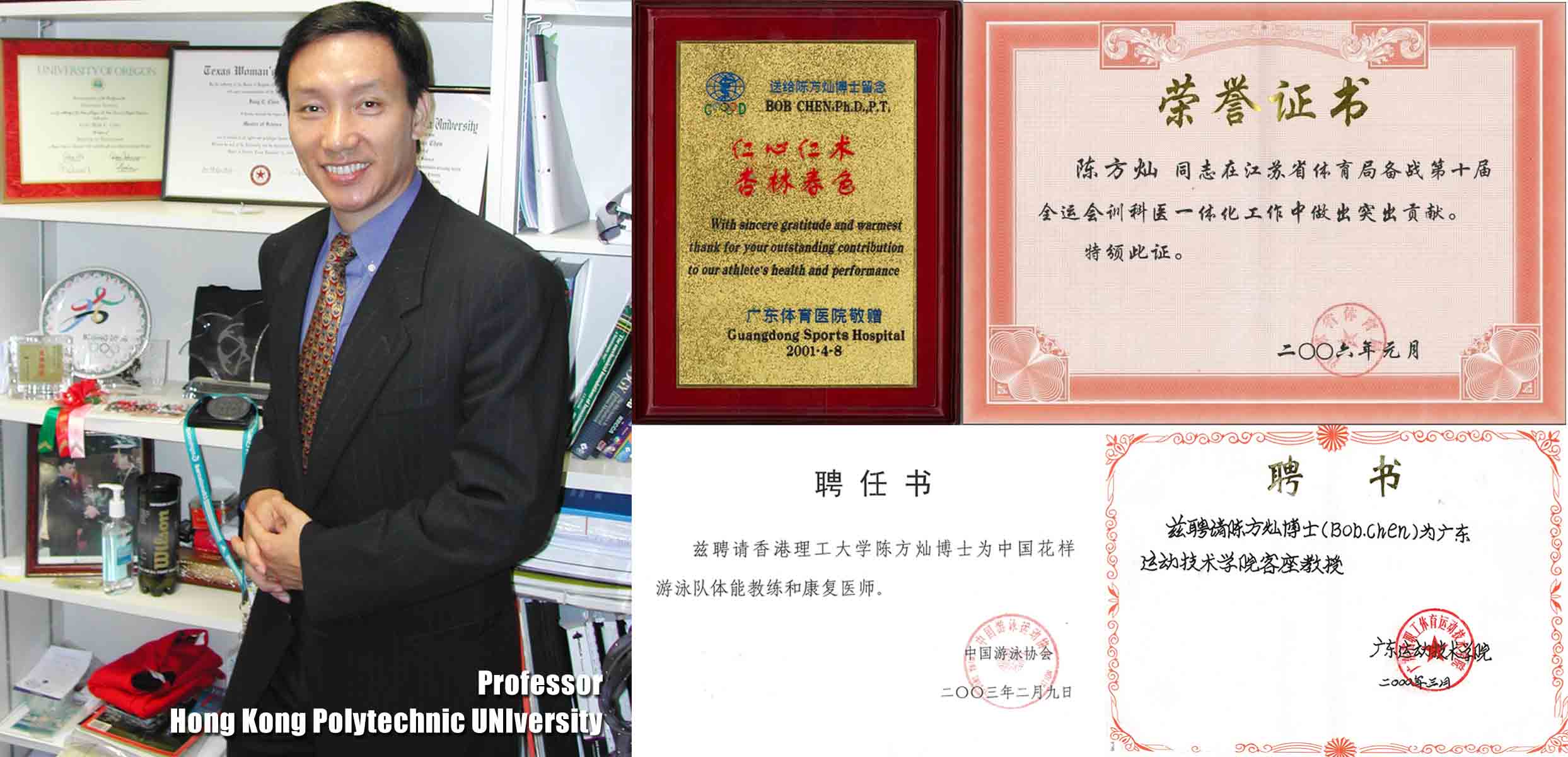 Dr. Bob Chen was baffled. “ I felt that my knowledge was too limited to help athletes to raise their levels or do more meaningful things.” He witnessed too many athletes and sports enthusiasts giving up their dreams due to injuries, including himself. Therefore, even though very few people at that time went to study abroad at their own expense, he was determined to study in America. He left China in 1985, and in the blink of an eye sixteen years passed. He was on a work-study program and got a dual masters degree in rehabilitation medicine and the science of human movements, as well as his doctoral degree in sports medicine and biomechanics at the University of Oregon. He was also a postdoctoral researcher for three years at the National Institute of Health (NIH).